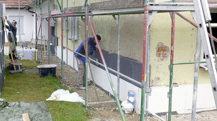 Anbringen eines Wärmedämmverbundsystems an einer Bestandsfassade